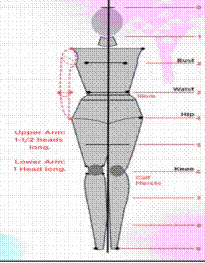the axis of vertical symmetry, to be able to render the proportions of the body